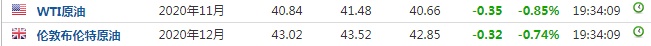 截至发稿,WTI原油跌0.85%,报40.84美元/桶。布伦特原油跌0.74%,报43.02美元/桶。