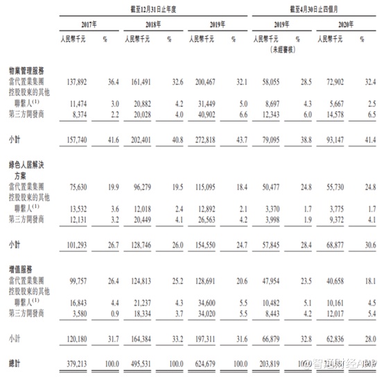 据招股书显示,第一服务管理的大部分项目来自于当代物业及控股股东等关联方,来自第三方开发商的项目很少。截至2020年4月30日,来自当代置业及控股股东关联人相关项目的收入占其总收入的84%。