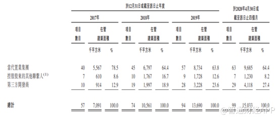 尽管十分依赖母公司,但第一服务也在努力增加第三方开发商项目的收入。来自第三方开发商的收入(三块业务合计,下同)从2017年的2408.5万元,仅占总营收的6.1%,增长至2020年4月30日四个月里,营业收入已经达到3596.7万元,占营业收入的16%。从管理面积来看,2017年公司来自第三方开发商的管理面积91.4万平米,占总管理面积的12.9%,截至2020年4月30日,公司来自第三方开发商的管理面积411.8万平米,占总管理面积的27.4%。