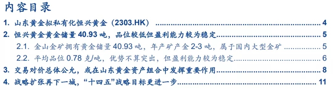 我们以恒兴黄金和山东黄金2019年产量测算,金山金矿或成为山东黄金第六大矿山,黄金产量或占山金总权益产量7%。尽管金山金矿品位不高,但资源量、储量及服务年限在山金自有矿山中不容小觑,我们认为本次收购若成功,考虑到山东黄金优秀的黄金生产管理能力和高水平的生产技术,金山金矿或在山东黄金资产组合中发挥重要作用。