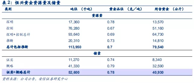 2.恒兴黄金黄金储量40.93吨,品位较低但盈利能力较为稳定