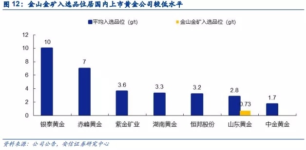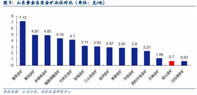 本次拟收购的金山金矿黄金品位在山东黄金自有矿山中排名靠后。胶东半岛区域集中了全国 1/4 的黄金资源储量,山东黄金具有得天独厚的资源禀赋优势,公司自有矿山最高品位高达7.12克/吨,品位在2~5克/吨之间的矿山有10个之多,而金山金矿的品位仅0.7克/吨,与山金其他矿山相比居于较低水平。