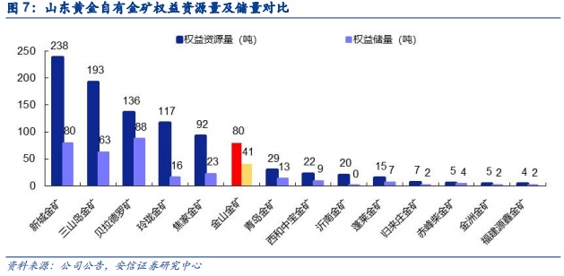 对比各矿山储量,贝拉德罗(136吨),新城金矿(86吨),三山岛金矿(63吨)为前三位,金山金矿黄金储量41吨,有望居山东黄金自有矿山第四位。