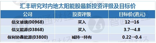 一、汇丰研究对内地太阳能相关股最新投资评级及目标价二、各大行对长城汽车(02333)最新投资评级及目标价三、各大行对舜宇光学科技(02382)最新投资评级及目标价四、各大行对其他港股最新投资评级及目标价