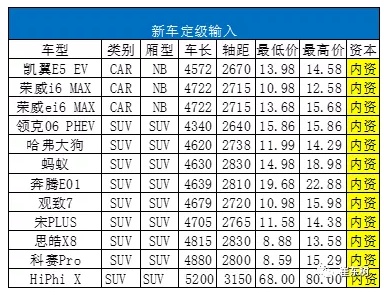 今年9月行业推出较多新车,内资新车较多,合资较少。这些新车有些是新车型,有些是改款改名字的新车型,更多的是新能源车型。本月的新能源车的新车数量堪称与传统车媲美,这些如何分级也是需要多重考虑的。