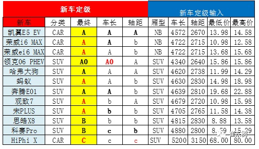目前这个分级仍在讨论阶段,目前建议分类也欢迎大家提出意见建议,根据争议情况确定车型建议级别,共同研判产品趋势。