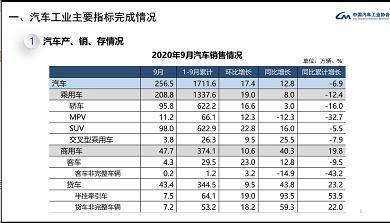智通财经APP获悉,据中国汽车工业协会数据,中国9月份汽车销量256.5万辆,同比增长12.8%,环比增长17.4%。1-9月汽车销量同比减少6.9%。其中乘用车销量208.8万辆,同比增长8%。前9个月,全国乘用车销量1337.6万辆,同比下降12.4%。