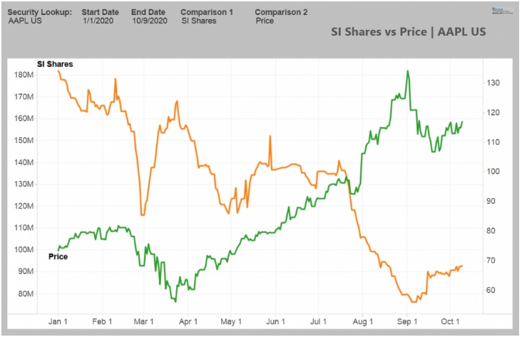 智通财经APP获悉,在昨日(10月12日)美股交易中,苹果(AAPL.US)股价的不断上涨吸引了不少做空者的注意力。