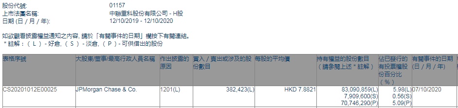智通财经APP获悉,香港联交所最新资料显示,10月7日,摩根大通减持中联重科(01157)38.2423万股,每股作价7.8821港元,总金额约为301.43万港元。减持后最新持股数目约为8309.09万股,最新持股比例为5.98%。