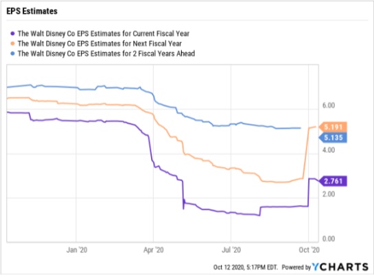 由于业务中断,分析师对该股的每股收益估计较之前的水平出现大幅下降,但较低的数字也源于DTC业务的更高支出。在本季度,DTC&I业务预计将产生11亿美元的巨额运营亏损。