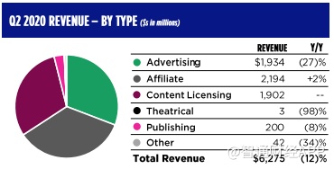 从具体的财务指标来看,第二季度的数据实际上并不是那么亮眼。营收下降12%,其中,广告营收下降27%。第二季度广告营收的下降部分被附属公司增长所缓解,但仍拖累了业绩。由于制作延迟,内容授权营收在二季度保持稳定。