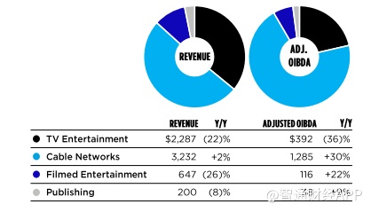 从具体业务来看,电视娱乐营收同比下降22%,有线网络营收同比增长2%,电影娱乐营收同比下降26%,出版营收同比下跌8%。不过分析师指出,这主要是受公共卫生危机的影响。