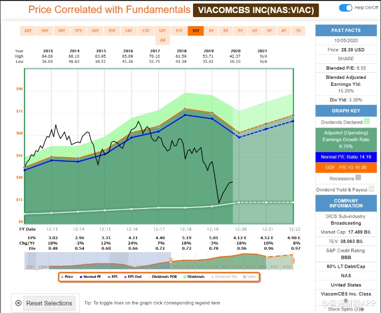 由于公共卫生事件的不利影响,预计ViacomCBS的每股收益将出现微弱的负增长。考虑到这一点,对该公司的远期每股收益进行平均,得到4年平均远期每股收益为4.57美元。分析师认为,ViacomCBS的市盈率至少为6倍至10倍,比其历史市盈率低4倍至8倍。这是一个很大的目标区间,但囊括了可能多年增长乏力的情况,仍体现了该公司股票的基本质量。