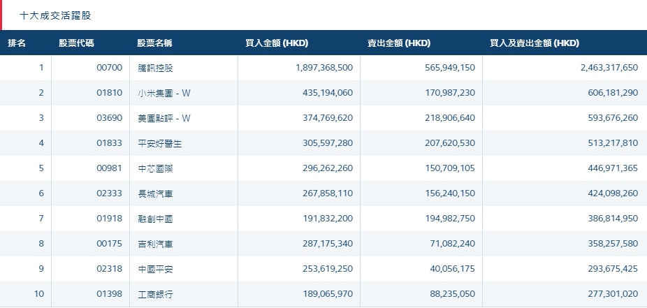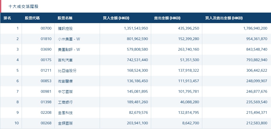 此外,美团点评-W(03690)、中国平安(02318)、中芯国际(00981)分别获净买入4.71亿、2.13亿、1.88亿港元。而金风科技(02208)遭净卖出5013万港元。
