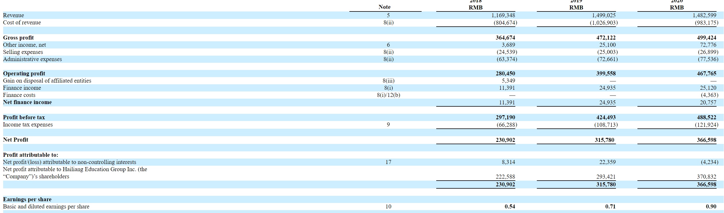 2020财年公司营收为14.83亿元(人民币,下同);毛利润为4.99亿元,同比上升5.78%;归属公司股东净利润为3.71亿元,同比上升26.38%;基本及摊薄后每股盈利0.9元,上年同期为0.71元。
