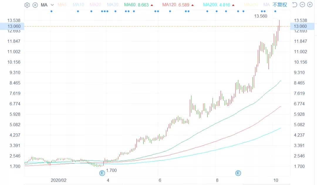 但事实恰好相反,天能动力于2020年8月30日公布了公司的半年报,尽管实现了量利双增,但市场对于这份成绩单并不买单。在财报公布的随后四个交易日,天能动力的股票价格累计跌幅达到了27.2%,从此与大行情脱钩进入了下跌通道,近三个月从高位回落近40%。