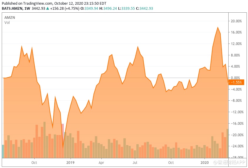 智通财经APP了解到,对许多新投资者来说,亚马逊(AMZN.US)仍然是一个挑战,就像过去20年一样。一方面,股价似乎不理会传统趋势,在每一个转折点上都不顾地心引力向上攀升。另一方面,大约两年前有明显迹象表明,亚马逊网络服务和北美零售业务的增长一直在放缓,这迫使该公司股价从2018年8月左右到2020年3月之间横盘徘徊。然后,卫生事件爆发了。
