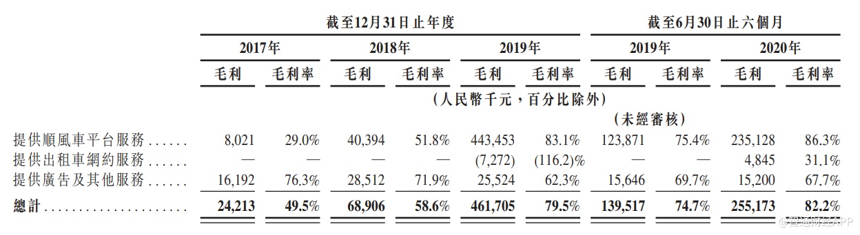 随着业务的持续扩张与收入的快速增长,互联网企业的规模效应在嘀嗒上得到明显体现。2017-2019年,嘀嗒的毛利率分别为49.5%、58.6%、79.5%,至2020年上半年时,提升至82.2%。之所以能有如此高的毛利,与嘀嗒的轻资产运营模式有很大关系,无论是顺风车还是出租车业务,嘀嗒只是对接车主和司机与乘客完成交易,本身并未组建任何车队。