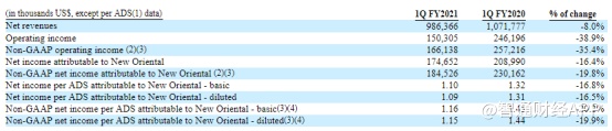 营收同比下滑8%,营业利润同比下滑38.9%,净利润同比下滑16.4%......在2021财年的首个季度,“关键财务指标下滑”成为新东方财报的主题。