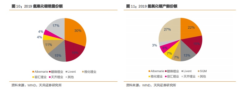 按照销量与产量份额来看,该公司目前已经成为全球领先的锂化合物生产商。具体而言,在2019年全球氢氧化锂市场的供应集中度较高的背景下,其氢氧化锂销量份额、产能份额分别为19%、15%,均位居全球第二。