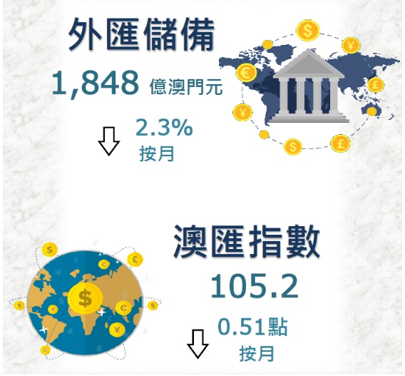 2020年9月底的外汇资产总额,约相当于2020年8月底澳门流通货币的10倍或广义货币供应(M2)中属于澳门元部份的79.8%。