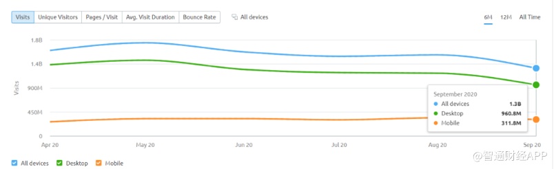 网站流量监控工具SEMrush的数据显示,Netflix第三季度的访问量为43亿人次(不包括应用程序流量),比上一季度的49亿人次下降了14%。