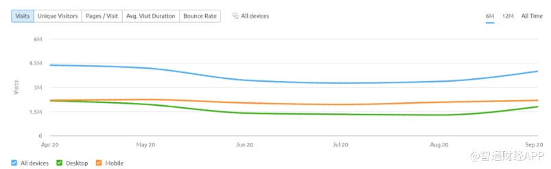SEMrush的数据显示,第三季度迪士尼网站的访问量达到了1070万人次,而且随着时间的推移,访问量不断增加。不过,这仍比上一季度的1260万人次低11.5%。