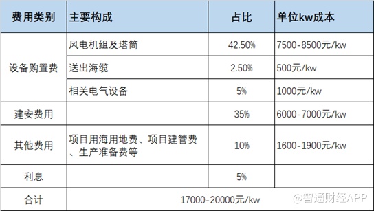 在整个风电的费用构成中,费用大头是风电机组和塔筒,这块成本占比达到42.5%,其次是建设和安装费用。
