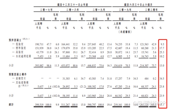 上游供应商方面主要包括水泥、骨料、外加剂等等,往续记录期间分别有297间、362间、284间和160间,经常性供应商占比分别达到21.2%、27.3%、40.1%及68.8%,公司产品的毛利率受供应商材料影响,经常性供应商占比增加有利用业务稳定和成本控制。