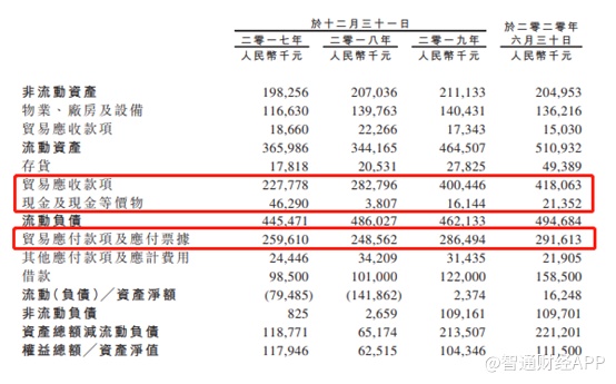 但是风光之下有隐忧,公司的变现能力不足,导致现金周转情况较为紧张。由于公司业务存在客户付款和向供应商付款的错配,因此从资产负债表可以看到,应收应付款均较高。截至2020年6月30日,贸易应收款达到4.18亿元,应付款项及票据为2.91亿元。