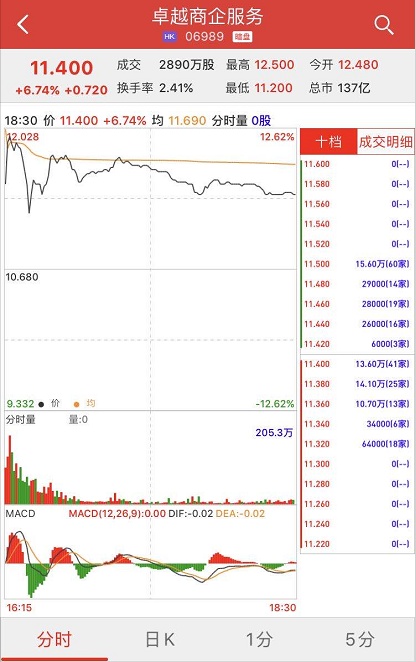 智通财经APP获悉,卓越商企服务(06989)将于10月19日在香港挂牌,截至暗盘收盘,利弗莫尔证券资料显示其暗盘报价11.4港元,较招股价10.68港元涨6.74%。每手1000股,不计手续费,每手赚720港元。