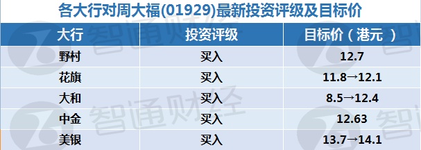 一、各大行对周大福(01929)最新投资评级及目标价