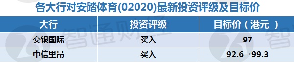 二、各大行对安踏体育(02020)最新投资评级及目标价
