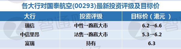 四、各大行对国泰航空(00293)最新投资评级及目标价