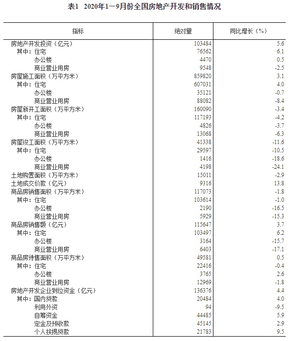 智通财经APP获悉,今日(10月19日),国家统计局公布2020年1—9月份全国房地产开发投资和销售情况。