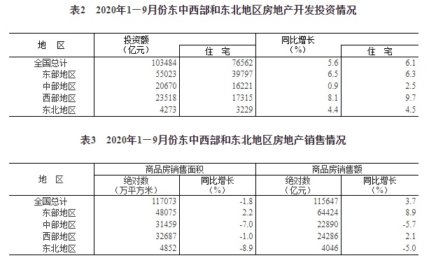 1—9月份,东部地区房地产开发投资55023亿元,同比增长6.5%,增速比1—8月份提高1.0个百分点;中部地区投资20670亿元,增长0.9%,1—8月份为下降1.1%;西部地区投资23518亿元,增长8.1%,增速提高0.2个百分点;东北地区投资4273亿元,增长4.4%,增速提高0.4个百分点。