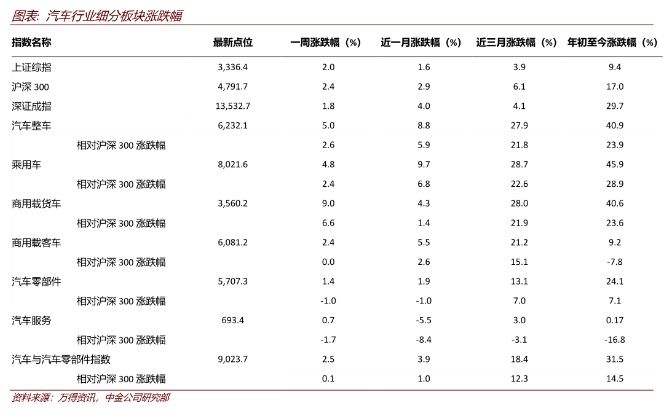 对应推荐理想汽车(LI.US)、小牛电动(NIU.US)、长城汽车(02333)、长安汽车、比亚迪(01211)、潍柴动力(02338)、华域汽车。