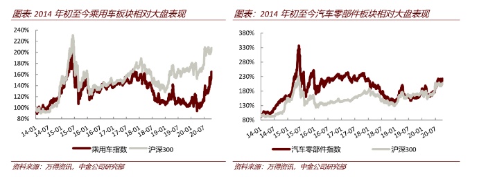 9月产销走势强劲,行业迈入旺季。7-9月狭义乘用车零售和批发销量同比增速均保持在7%以上,有去年6月清库存后低基数的影响,但从绝对量看,3季度逐步恢复到2018年同期的水平,体现脱离公共卫生事件影响后车市持续复苏的态势。此外从环比走势看,3季度逐月持续走强,9月零售环比增幅处于历史环比中枢区间,批发环比增幅高于历史中枢,体现了进入金九旺季的特征,也显示出在车展新车密集推出的带动下,车企和终端对车市需求持续复苏的预期都更加乐观。