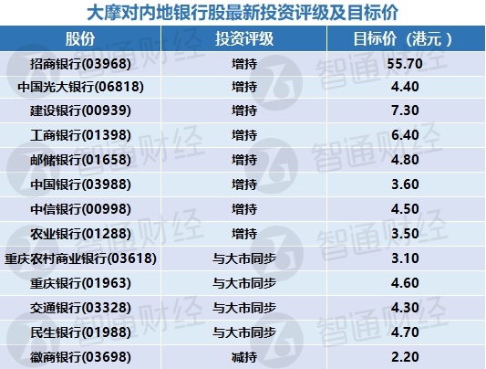 大摩表示,内银即使计入长远较低股息,在经济复苏期仍有良好价值。大摩调低对内银盈利预测,当中计入2020年第二季度拨备,以及持续政策干预,同时进一步降低主要内银的股本回报率,包括潜在更多政策指引。该行强调,最新估值中,仍计入内银长期相对最新目标价,会有四至五成股价升幅,相信进一步经济复苏及温和政策干预,应会支持股价反弹,偏市场主导银行如招商银行(03968)、平安银行等,仍是大摩首选,但同时相信主要国有内银亦有反弹价值。