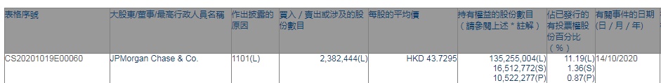 智通财经APP获悉,香港联交所最新资料显示,10月14日,摩根大通增持瑞声科技(02018)238.2444万股,每股作价43.7295港元,总金额约为1.04亿港元。增持后最新持股数目约为1.35亿股,最新持股比例为11.19%。