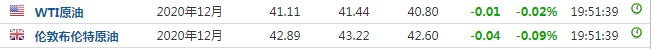 截至发稿,WTI原油跌0.02%,报41.11美元/桶。布伦特原油跌0.09%,报42.89美元/桶。