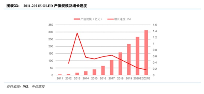 AMOLED面板的市场需求目前主要以智能手机为主,预计到2020 年,随着我国 OLED 行业规划建立的产能逐步进入投产期,我国 OLED 产能在全球总产能中的占比将达到28%左右,成为仅次于韩国的全球第二大 OLED 生产国。