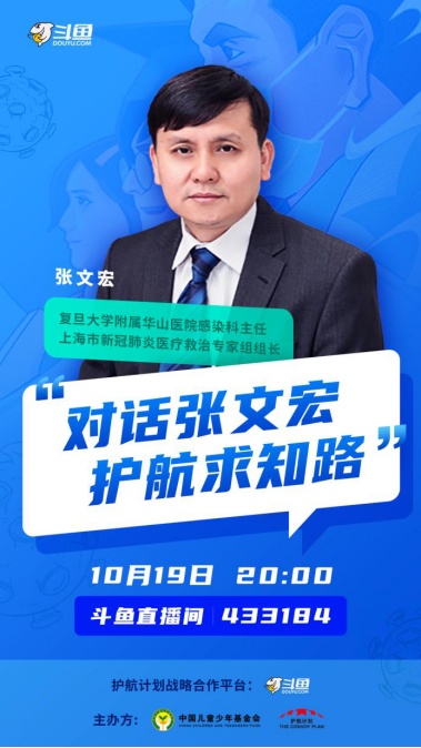 智通财经获悉,10月19日晚8点,中国儿童少年基金会护航计划联合斗鱼(DOYU.US)直播,共同推出"对话张文宏、护航求知路"直播活动。主办方特别邀请了被网友誉为“硬核教授”、“耿直boy”的复旦大学附属华山医院感染科主任张文宏担任主讲嘉宾。