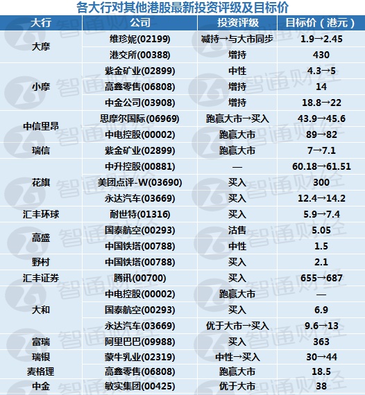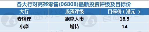 一、各大行对高鑫零售(06808)最新投资评级及目标价