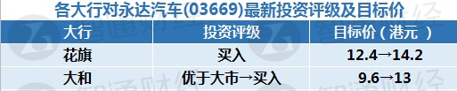 二、各大行对永达汽车(03669)最新投资评级及目标价