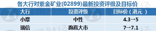 三、各大行对紫金矿业(02899)最新投资评级及目标价
