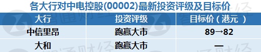 四、各大行对中电控股(00002)最新投资评级及目标价