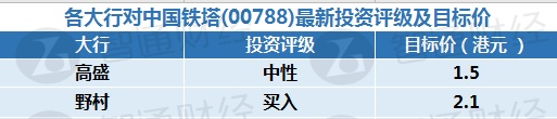 五、各大行对中国铁塔(00788)最新投资评级及目标价