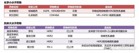 在乳腺癌治疗领域,HER2是抗体研发的主要靶点,化药小分子研发则以EGFR、HER2、CDK4/6为主要靶点。在嘉和生物前三个主要的管线中,以HER2为靶点的GB221进展最快,目前处在临床3期,预计下半年NDA备案。另有PD-1的一款产品进入NDA备案,CDK4/6的管线则还处于早期。