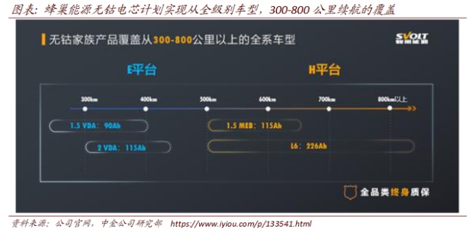 三电技术方面,兄弟公司蜂巢能源已于长城汽车形成协同,供应车型包括欧拉iQ、R1。蜂巢能源也于2020年9月率先发布无钴电池产品规划,具备更强的成本竞争力,其E平台和H平台无钴电芯计划覆盖A00-D级全系车型和300-800公里的全应用场景,并于2021年推出。目前蜂巢在正极材料、电芯、模组、系统、BMS以及拆解回收等业务都有布局,技术路线方面,除了无钴新技术外,在三元(包括高镍材料)也进行了重点布局。我们认为蜂巢剥离有利于实现更市场化的竞争、拓宽外部供应客户以及丰富融资渠道,提升产品竞争力,最终体现在整车端的降本增效、产品力提升。